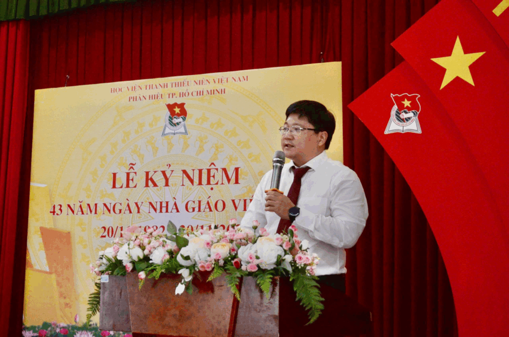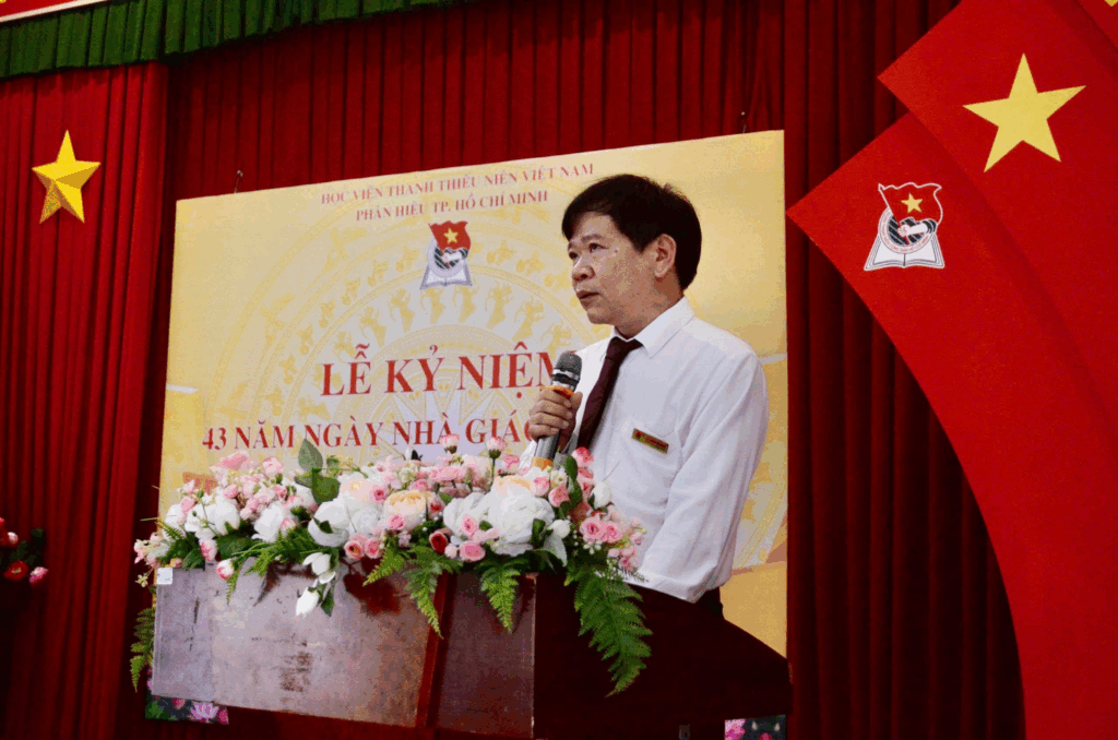 Đồng chí Đặng Vũ Tùng – Giám đốc Phân hiệu Học viện Thanh thiếu niên Việt Nam tại TP. Hồ Chí Minh cũng đã có những phát biểu chúc mừng và tri ân gửi đến lãnh đạo Học viện và quý thầy cô giáo nhân ngày 20/11.